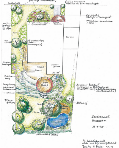 Die Arbeit von Frau Hecker zeichnet sich durch ihre tollen Ideen aus, ihre Entwürfe sind ausgesprochen verständlich und geben einen sehr anschaulichen Überblick bei der Planung des Gartens. Gestaltungswünsche, die von meiner Seite an sie herangetragen worden sind, wurden von ihr fachlich und sachlich bei der Planung aufgenommen und bestmöglich umgesetzt. Meine Pflanzwunschliste wurde an die Bodenverhältnisse entsprechend den Standortthemen angepasst und um die entsprechenden Pflanzen ergänzt. Die Aufstellung konnte nach Abstimmung an den Gartenbaubetrieb zur Bepflanzung weitergegeben werden. Frau Hecker zeichnete sich nicht nur durch ihre freundliche und verbindliche Art aus, sondern auch durch ihr Engagement und ihre hohe fachliche Kompetenz, was sich heute in vielen Bereichen des neu gestalteten Gartens widerspiegelt. Besonders hat mich beeindruckt, dass sie Vorhandenes (Steine, Pflanzen, Büsche, Strukturen) wenn nötig umgesetzt hat und mit Neuem ergänzt und dadurch eine optimale Wirkung im Garten erzielte. Durch eine gut strukturierte Planung wurden im Garten verschiedene Themenbereiche gestaltet, z.B. wurde aus einer unansehnlichen vernachlässigten Ecke des Gartens ein Bereich im „japanischen Stil“ oder der „Waldgarten“ erstellt. Zudem wurden meine Herzensangelegenheiten wie z.B. ein Kräuter- oder ein Naschgarten hervorragend umgesetzt und an den bestmöglichsten Stellen des Gartens positioniert um dort super zur Geltung zu kommen ohne das diese Bereiche wie in einem Schrebergarten wirken. Der gesamte Garten wurde mit Nachhaltigkeit und Weitsicht geplant, Vorhandenes wurde integriert und vor allen Dingen wurden aus harten Bereichen durch sehr gut gestaltete Änderungen fließende weiche, geschmeidige Zonen geschaffen. Die Umsetzung zwischen dem, was mir wichtig war, und dem, was die einzelnen Gartenstandorte zuließen, ist fachlich und anschaulich sehr gut gelungen. Es entstanden verschiedene Areale mit unterschiedlichen Themen sowie auch Ruhebereiche, so dass es im Garten nie langweilig wird. Frau Hecker hat alles super arrangiert. Auch war es mir besonders wichtig, dass der Garten ganzjährig erblüht und auch dies ist von ihr hervorragend umgesetzt worden. Besonders hervorzuheben ist auch, dass Frau Hecker immer erreichbar und ansprechbar war während der Ausführung durch den Landschaftsbauer.